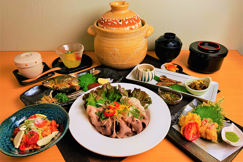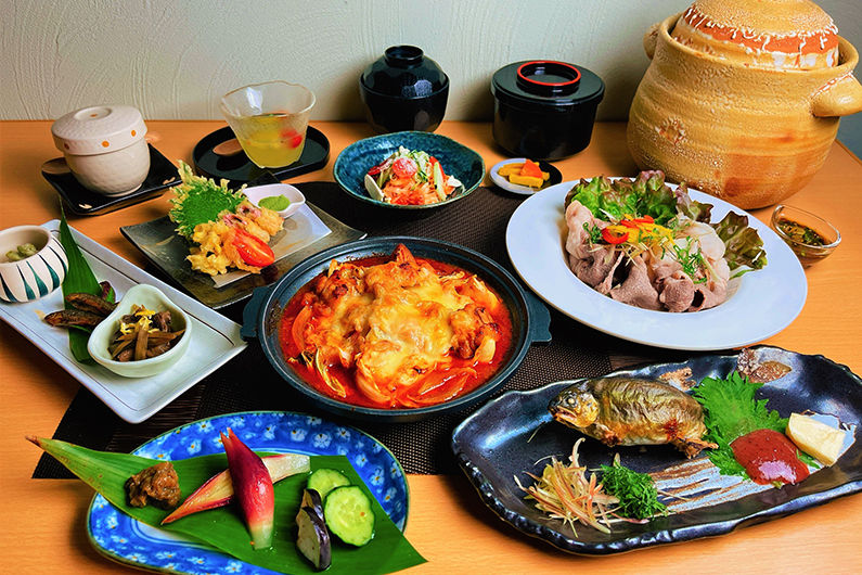 地元の食材と新鮮なお野菜が主役のお料理をご用意いたしました。